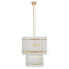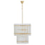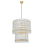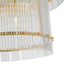 This six bulb pendant light is a timeless classic which brings ambience to the living area. The sleek two-tier metal frame in the warm metallic finish is complete with an array of fluted glass strips in a rectangular shape creating a warm glow.