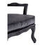 The velvet upholstery makes this chair and footstool set soft to the touch and luxuriously comfortable. The dark grey fabric and black painted wooden frame give this set an imposing presence in the living room. Like the rest of the Rococo range, the chair has a cushioned seat, and padding on the footstool and back rest.