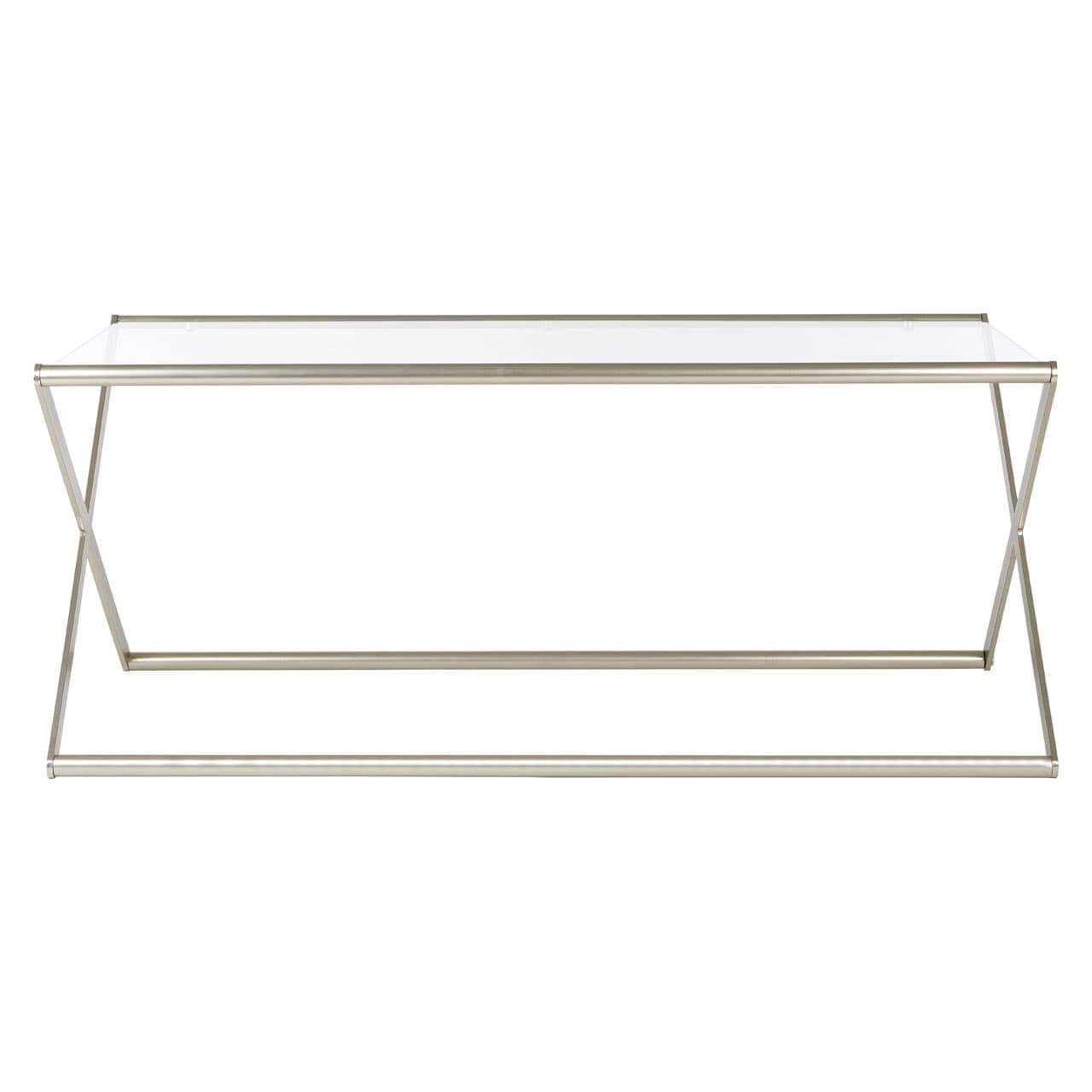 An elegant feature in your living space, the Roma coffee table will provide extra surface space and style in a contemporary setting. A metal frame, with a satin nickel finish, is strong and sturdy ensuring long lasting use and a chic look. The clear tempered glass surface complements the frame, while being suitable for serving drinks and snacks from or why not keep magazines, books, reading glasses etc. close to hand. The rectangular Roma coffee tables criss cross design will look fantastic in a modern room.
