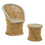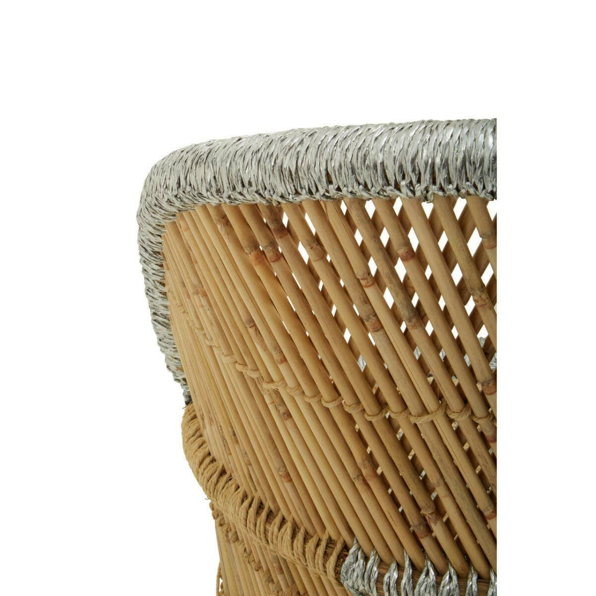 Intricately handcrafted from sustainable bamboo, this chair and stool boast a knotted style weaving of grey rope to ensure support with comfort. The subtly reclined backrest and curved armrests of this chair create a smooth, undulating shape.