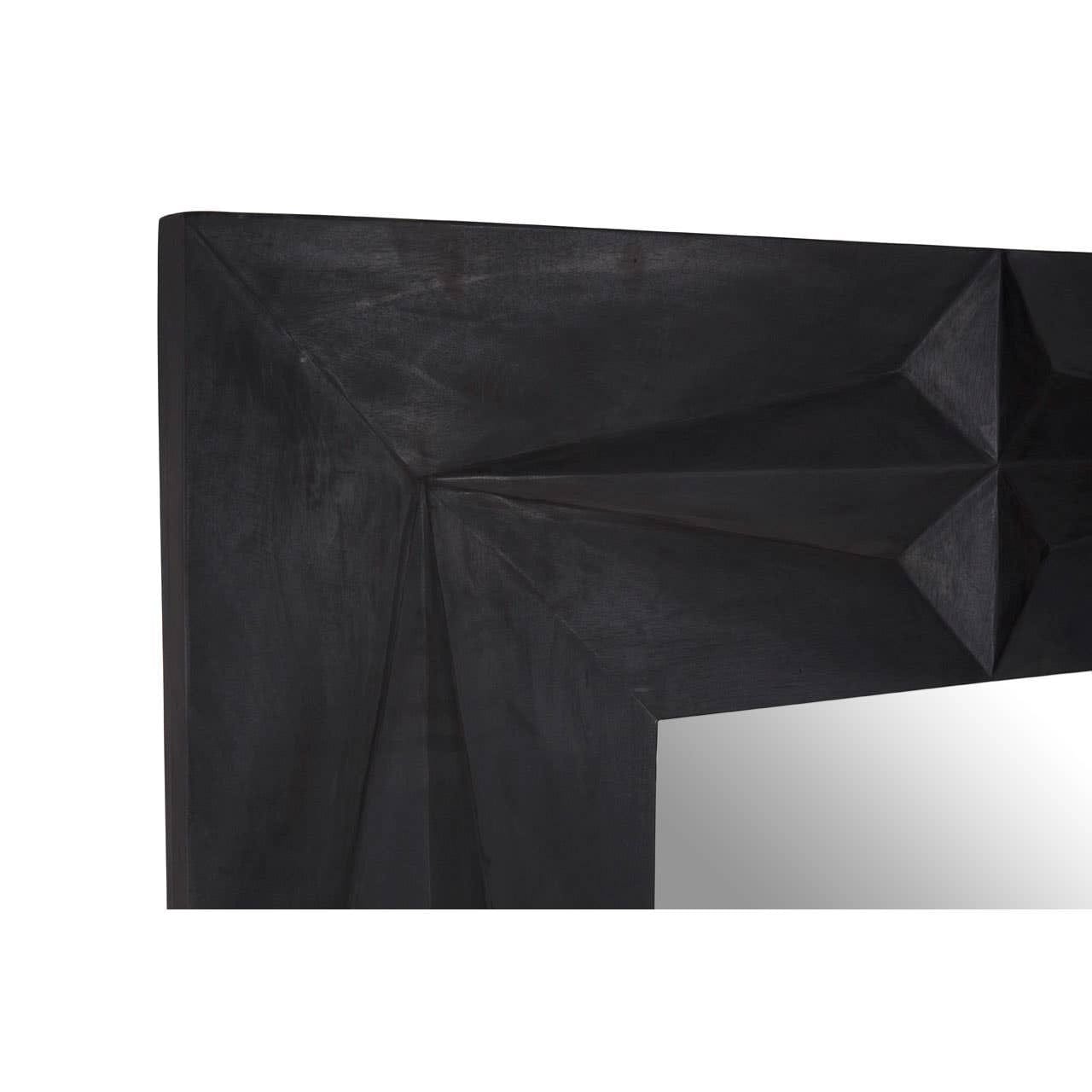 This statement mirror has a bold geometric patter, while the deep black finish enhances its modern aesthetic, making it a perfect focal point for contemporary interiors. The square silhouette, combined with its faceted design, adds depth and visual interest.