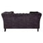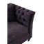 Covered in dark grey velvet, this two seat sofa has button tufting that lends it a decorative texture. Elegant curves of the back and armrests enhance the elegance. Supported by castors, it has matching cushions that enhance comfort.