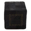 This pouffe is made from genuine cowhide leather with black patchwork texture.The warm metallic, square pattern stud detail lends the design a luxe accent and harmonises with the square shape.