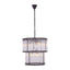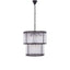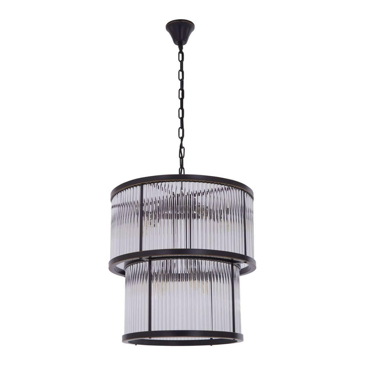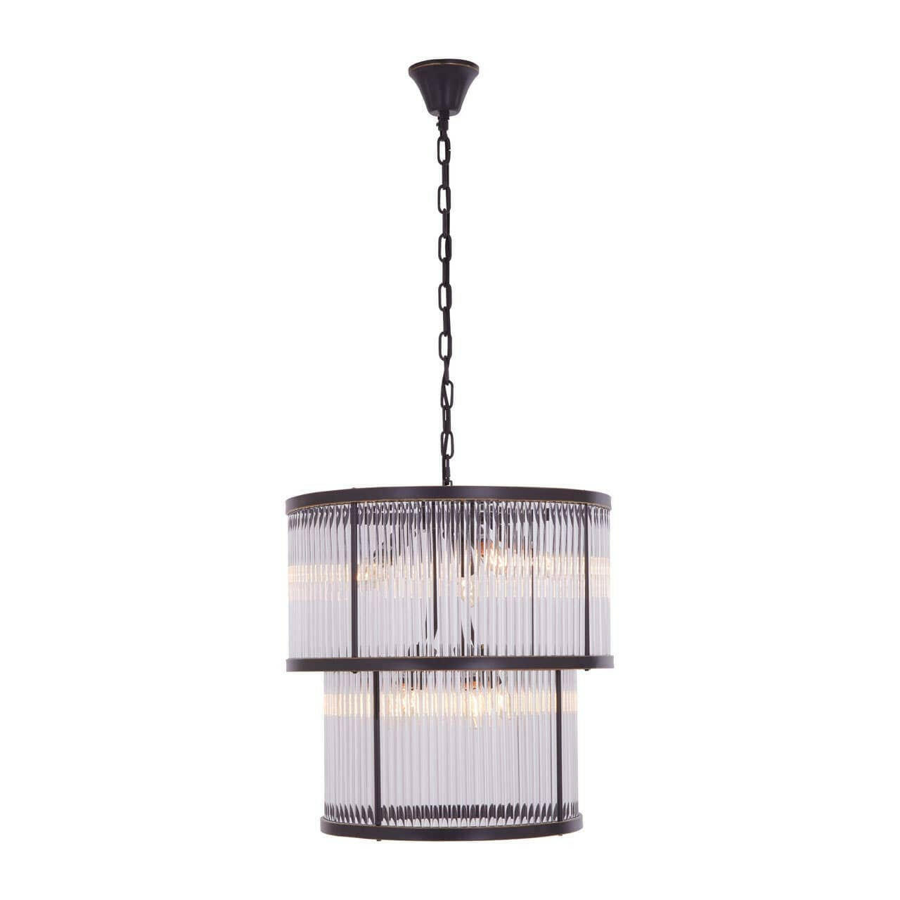Elegantly crafted and fixed within a black iron frame, this 2 tier drum-shaped chandelier has curtains of vertical glass rods that refract light and create a warm diffused glow in the room.