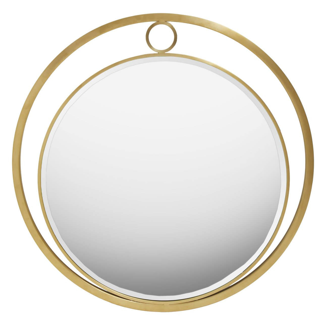 The timeless design of this wall mirror exhibits a sleek profile that blends easily into modern and luxe interiors. The reflective mirror is encased neatly in a gold finish stainless steel frame.