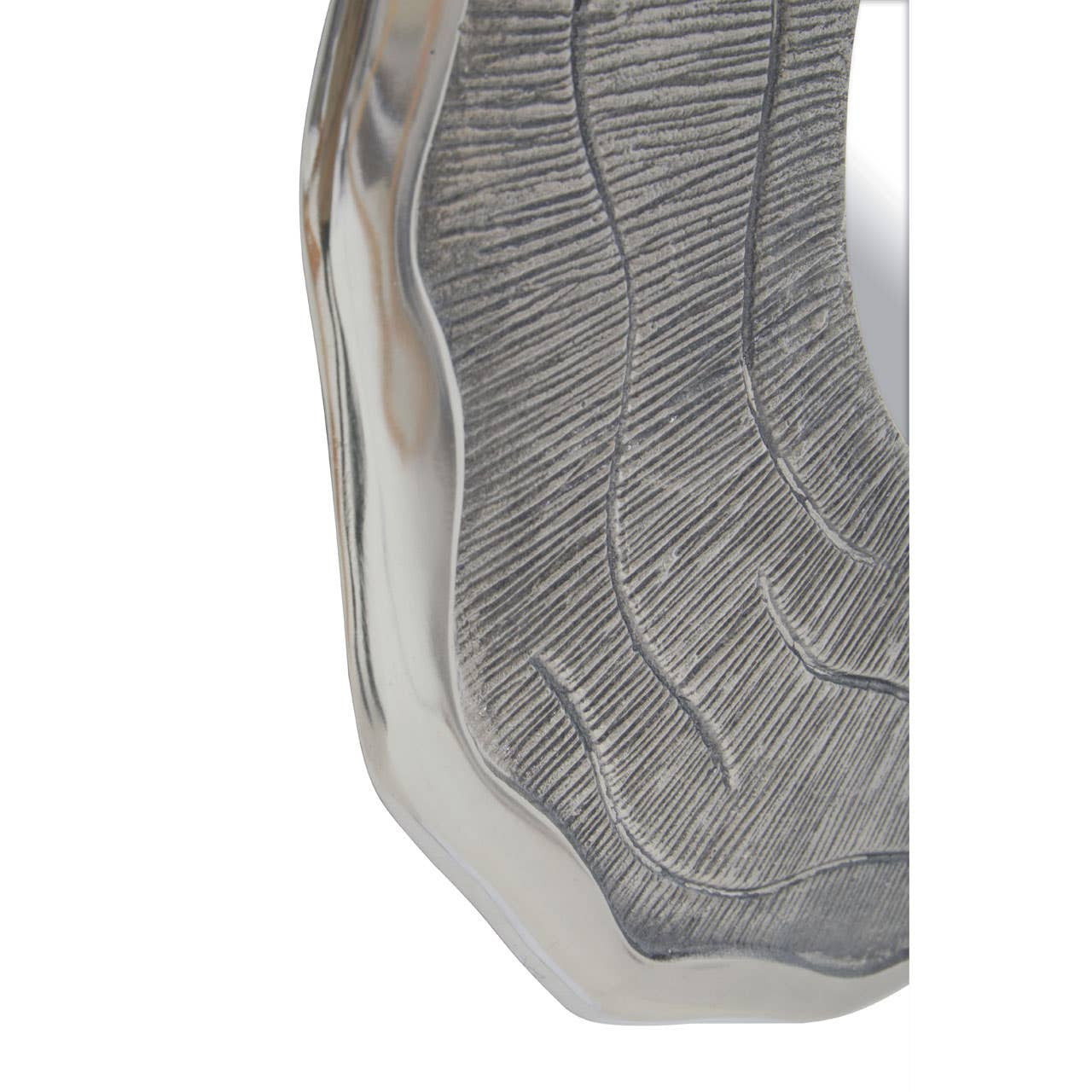 The modern wall mirror combines a warm oak-effect frame with a sophisticated silver finish, creating a perfect blend of natural and contemporary style. Its compact size makes it ideal for adding elegance to modern style interiors.