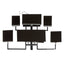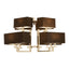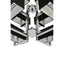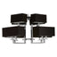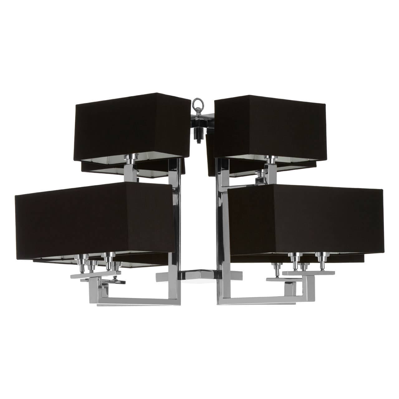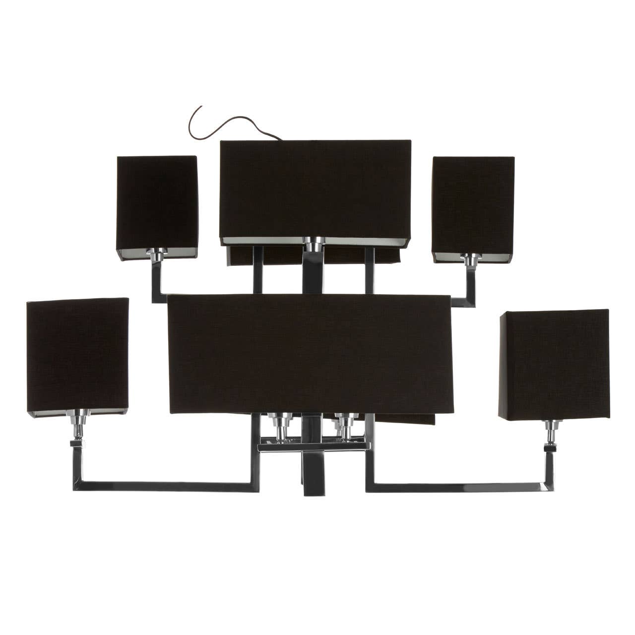 Each light has an acrylic shade covered with black textured fabric contrasting the silver tones of the holding stand. Their square and rectangular shapes form a symmetric design aesthetic and the fabric helps them to cast an ambient glow.