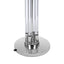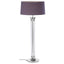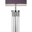Tubular lines of clear acrylic are contained within sleek nickel finish docks. The round base has a matching reflective nickel coating. The shade is made from soft fabric and has a contrasting dark grey colour.