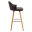 The seat of the Stockholm bar stool is covered with soft faux leather and has a sleek black colour. Its slim arms and arcing backrest create a chic silhouette and add to its comfort and support. The beechwood legs have a lacquer veneer for a smooth finish. A pair of chrome bars offer a metallic touch and provide a place to rest feet.