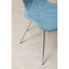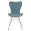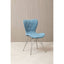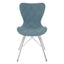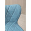Upholstered in soft blue fabric, this bar chair has an undulating seat complemented with a tapered backrest that features a quilted diamond pattern for an inviting feel. Reflective chrome finished slanted iron legs are adjoined with sleek cross bars beneath the seat while they combine to coordinate with the minimal geometric lines.