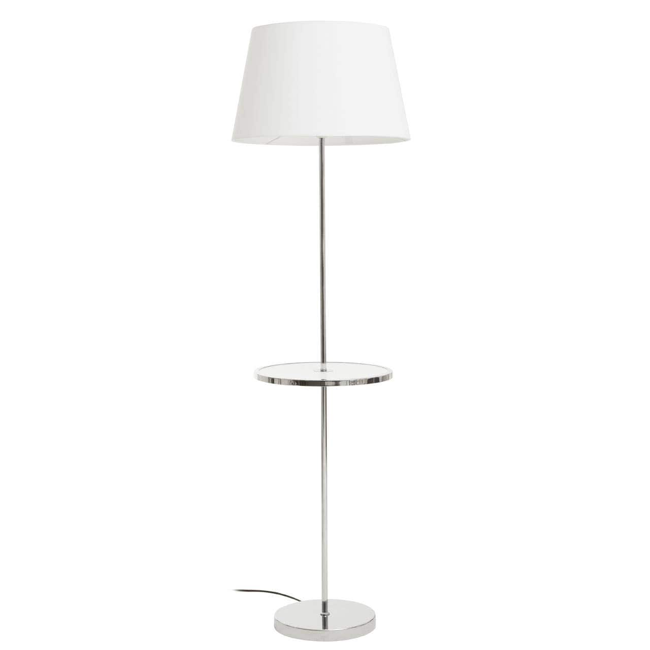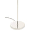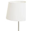 This floor lamp has a slender frame and minimal round base in a reflective chrome finish. A white fabric tapered shade matches the circular ledge that makes this lamp ideal for a small space home or office environment.