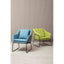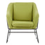 Upholstered with tactile green velvet, this chair rests on a black finish metallic frame which counterpoints its subdued hues. The backrest and high armrest contribute to its angled construction and stylish aesthetic. Slim and sturdy stainless steel legs are skewed to coordinate the chair’s slanted design.