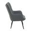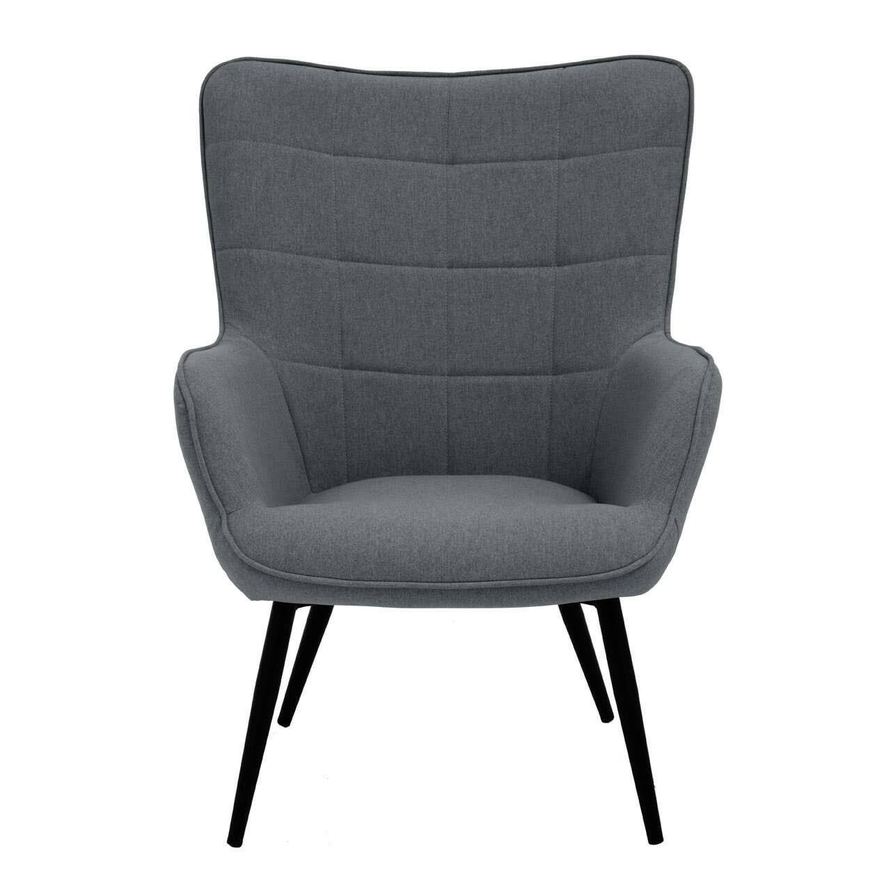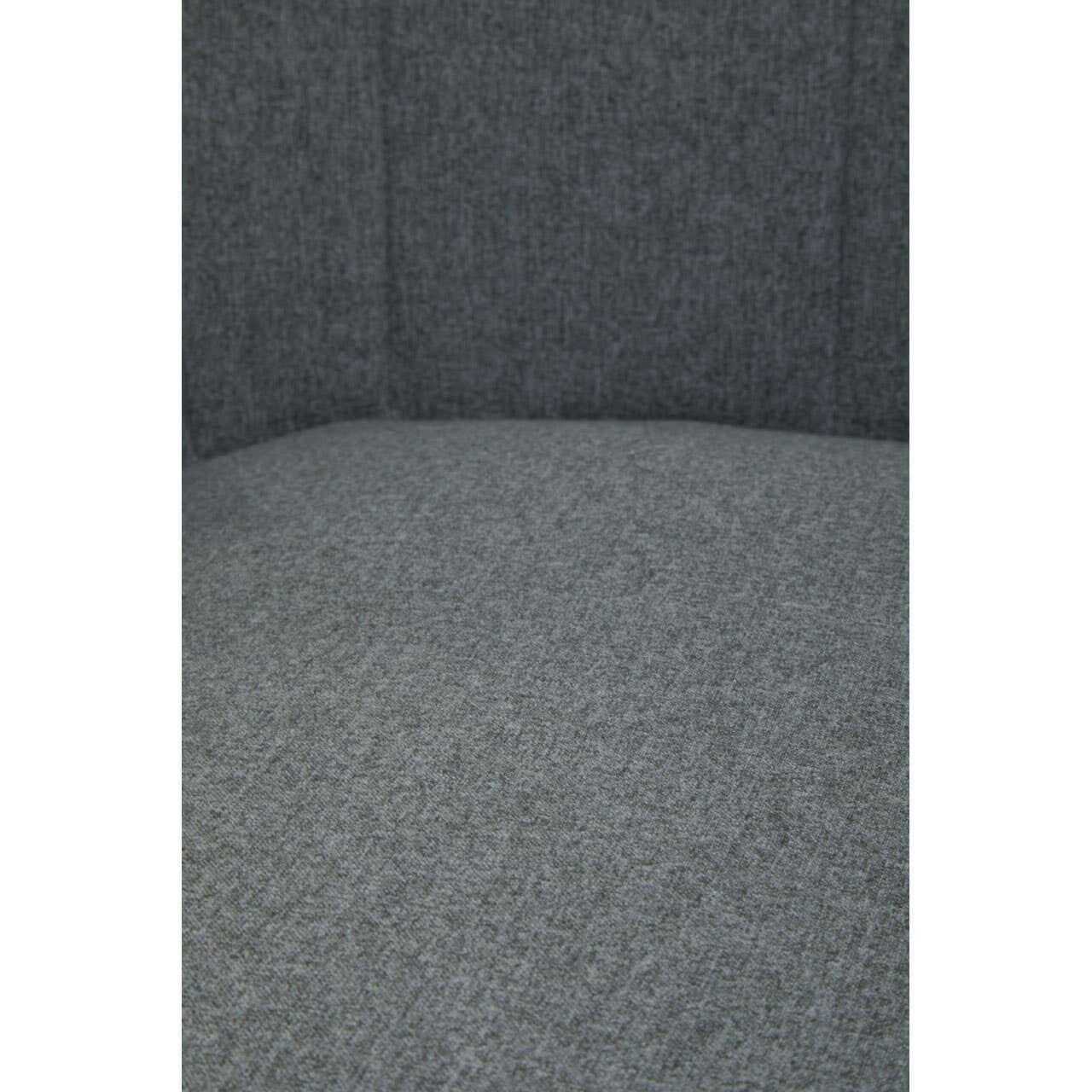 This chair features clean lined stitching and a high density foam filled seat along with a square tufted backrest. Skilfully upholstered in luxe and wear resistant grey fabric, this chair has sleek tapered legs in a gold chrome finish.