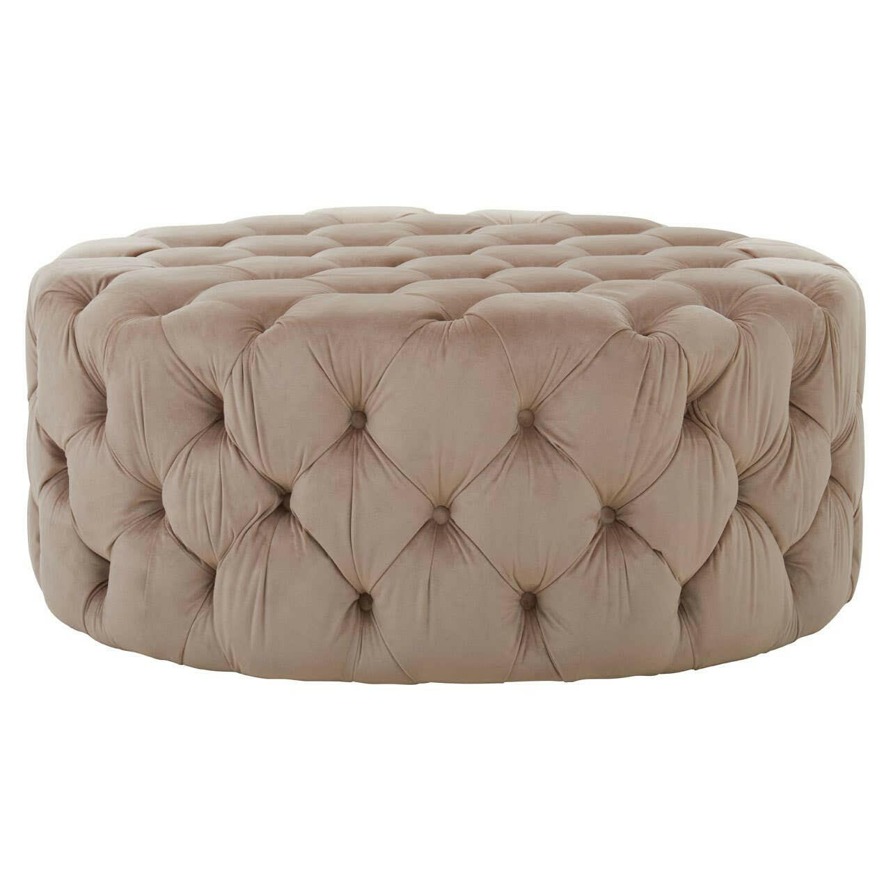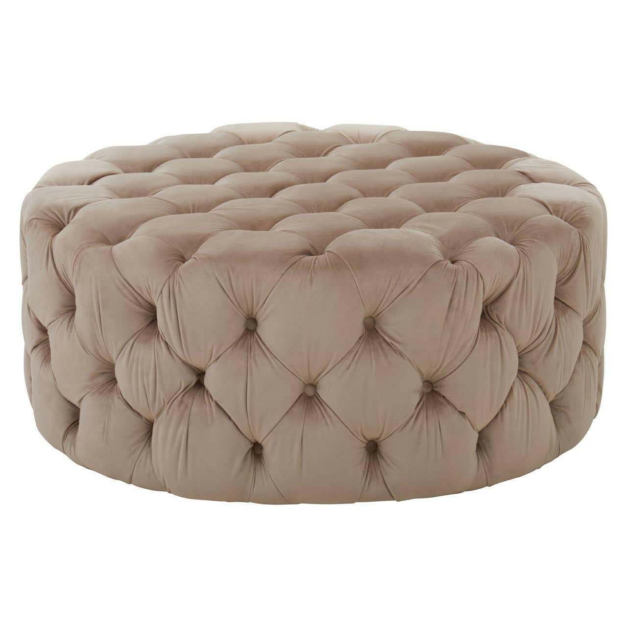 This round stool is wrapped in natural velvet that is enhanced by deep button tufting. Sumptuous padding adds to the comfort, making this piece as comfortable as it is stylish.