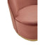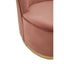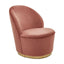 This barrel style chair is sleek and graceful in dusty pink velvet upholstery that enhances its elegant curves and craftsmanship. The plush seat is supported with a gold finish round metal base that contributes to the glam appearance.