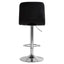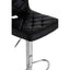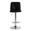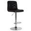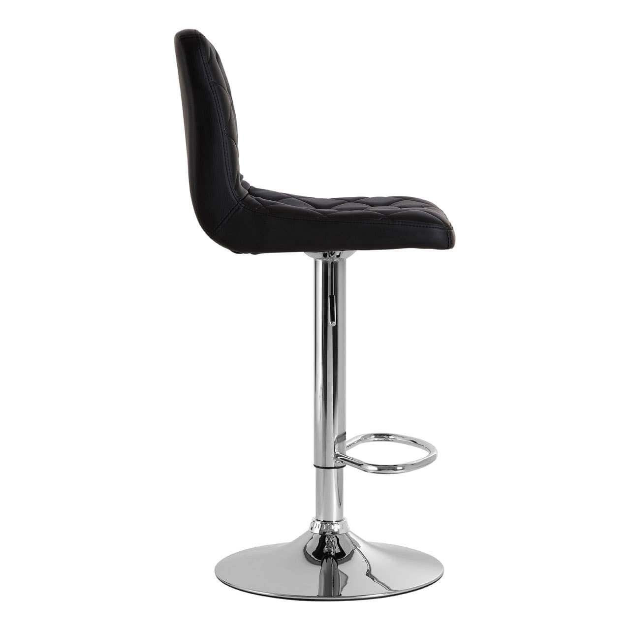 Its base and stand are made from sleek chrome metal, with a matching chrome footrest that enhances sitting comfort. Black faux leather is used to upholster the plump seat and backrest, with twin line stitching forming an array of diamond shapes across its surface. Use the slim chrome lever beneath the seat to adjust its height.