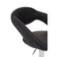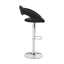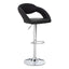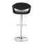 Its wide round base and cylindrical stand are both made from polished chrome metal, the reflective silver finish combining with the black faux leather to produce a monochrome look. A comfort-enhancing oval footrest complements the seat's rounded lines, while a sleek chrome handle enables effortless height adjustment. The seat's backrest follows a 45° angle for a relaxed sitting position.