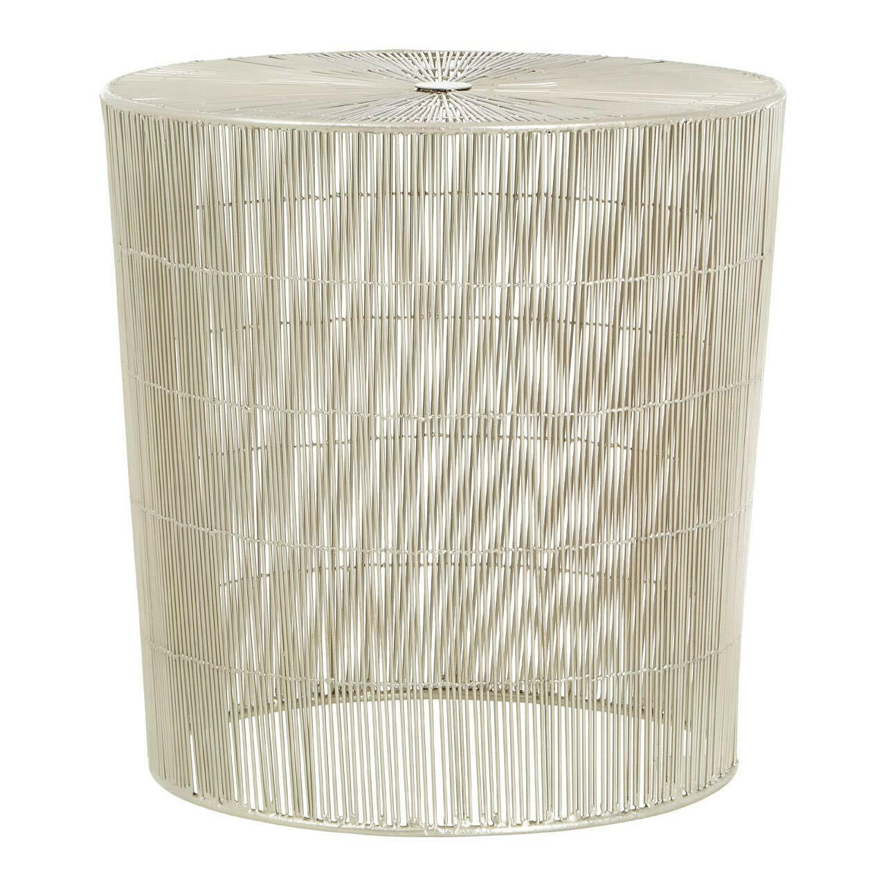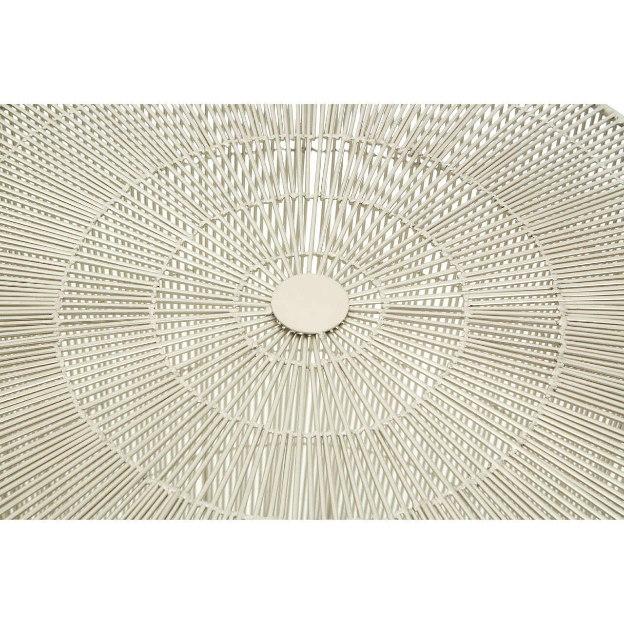 The iron strips that comprise its top section emerge from a central plate, with intersecting lines that produce a concentric circle pattern. Its sides follow a similar arrangement, combining to give the table a light and airy aesthetic. The iron is given a pewter finish that makes the table easy to coordinate with silver metal accessories. *This item is handcrafted so please expect slight variations to the finish*