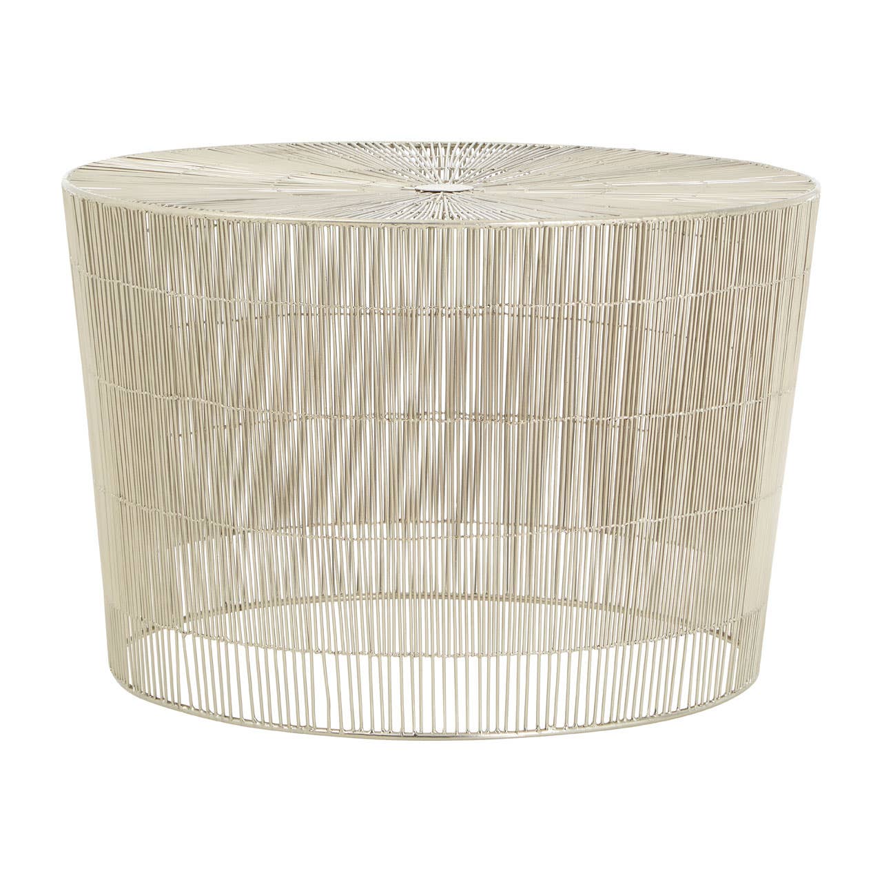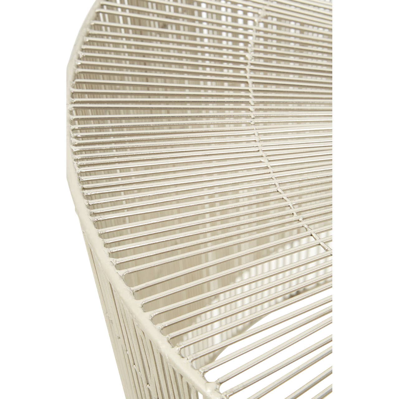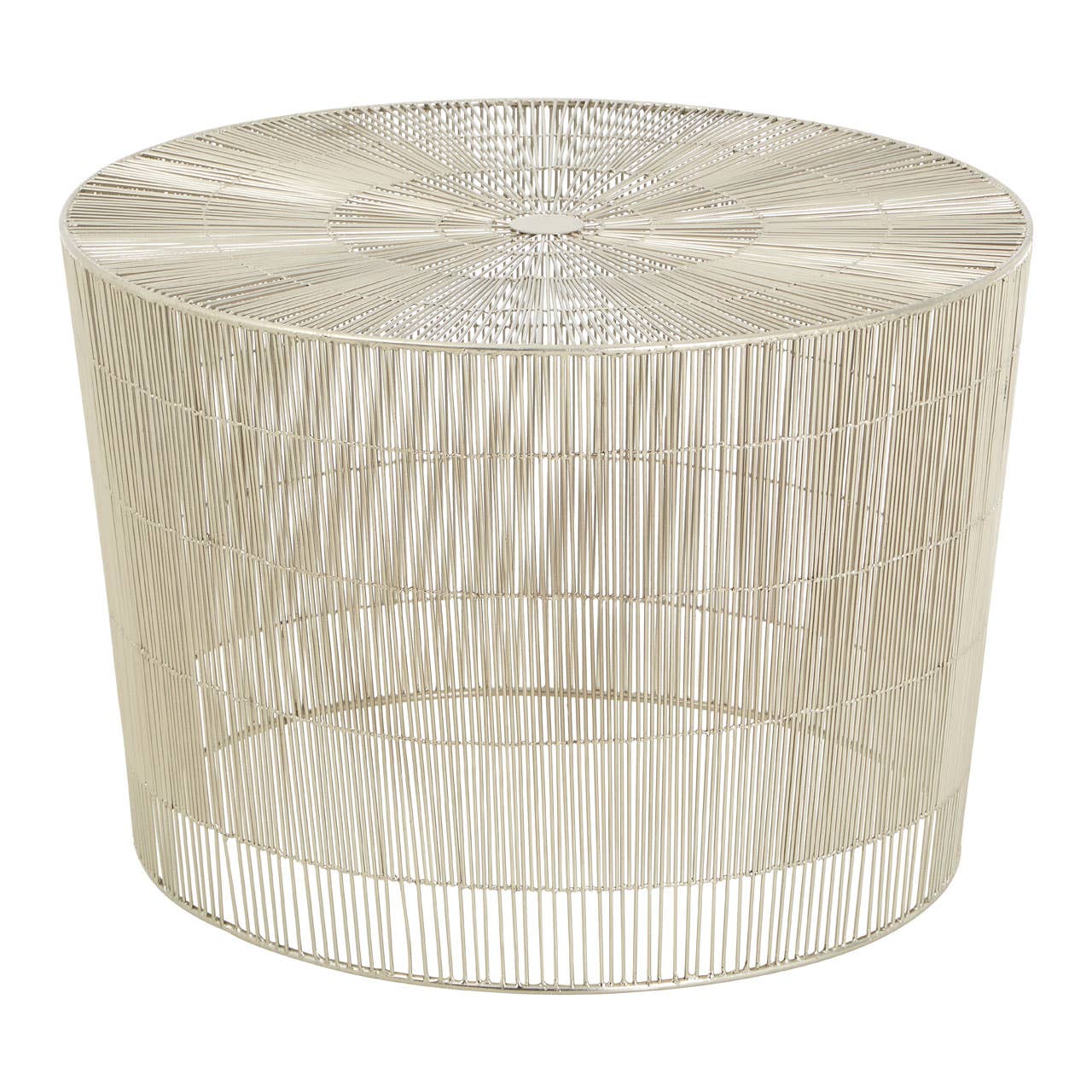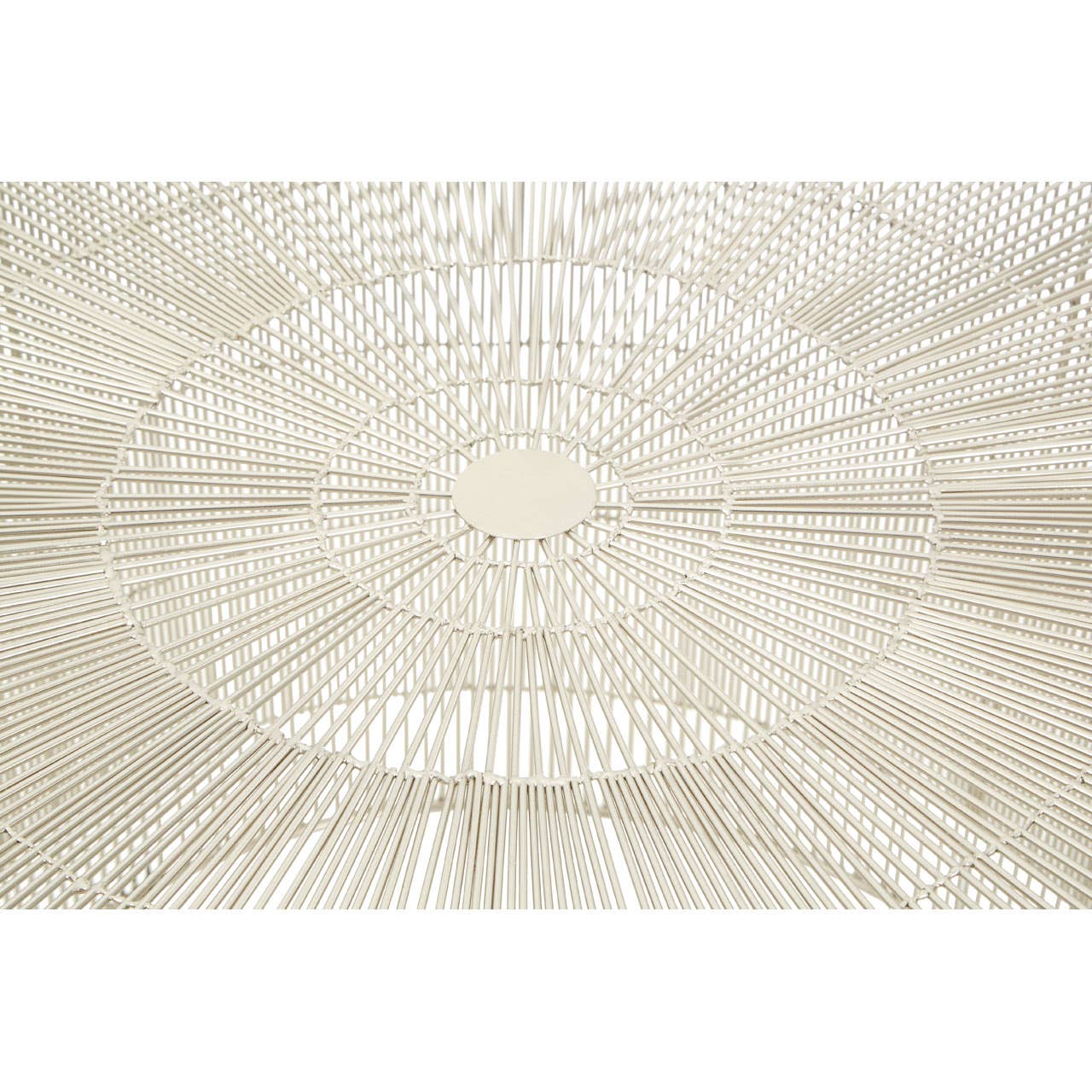 The iron strips that comprise its top section emerge from a central plate, with intersecting lines that produce a concentric circle pattern. Its sides follow a similar arrangement, combining to give the table a light and airy aesthetic. The iron is given a pewter finish that makes the table easy to coordinate with silver metal accessories. *This item is handcrafted so please expect slight variations to the finish*