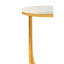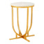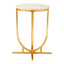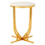 The Templar curved base side table has a round, smooth white marble top which provides a soft tonal counterpoint to its reflective frame. The table features a curved base that is supported by a cross formation at the bottom. The design of the Templar side table is both distinctive and stylish, with luxurious finishes taking centre stage.