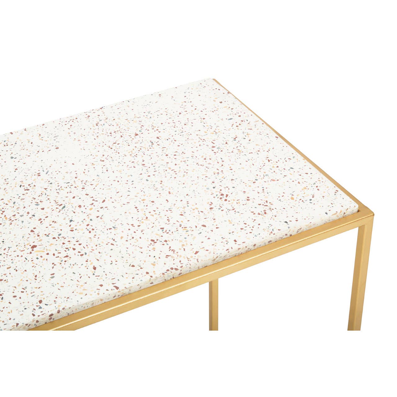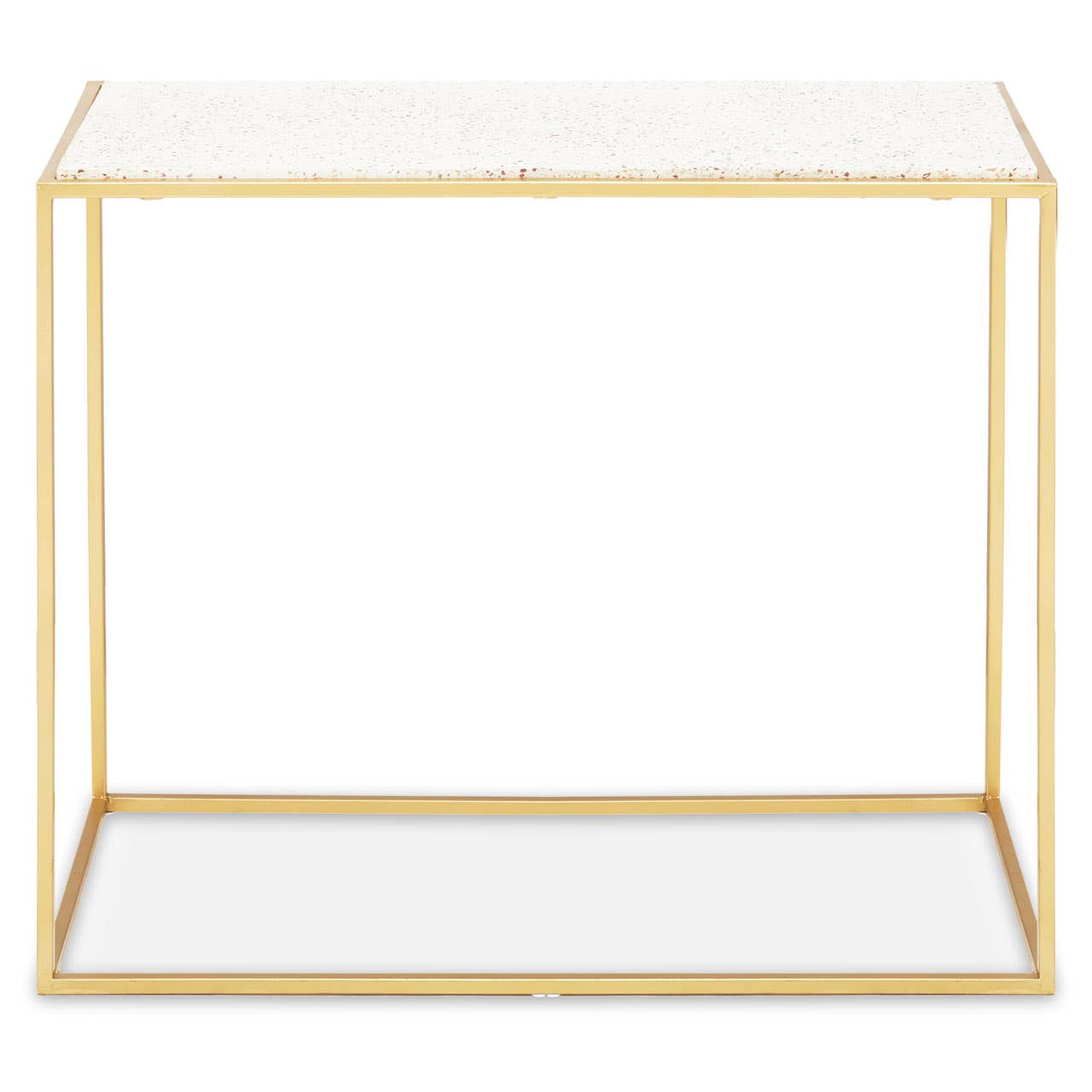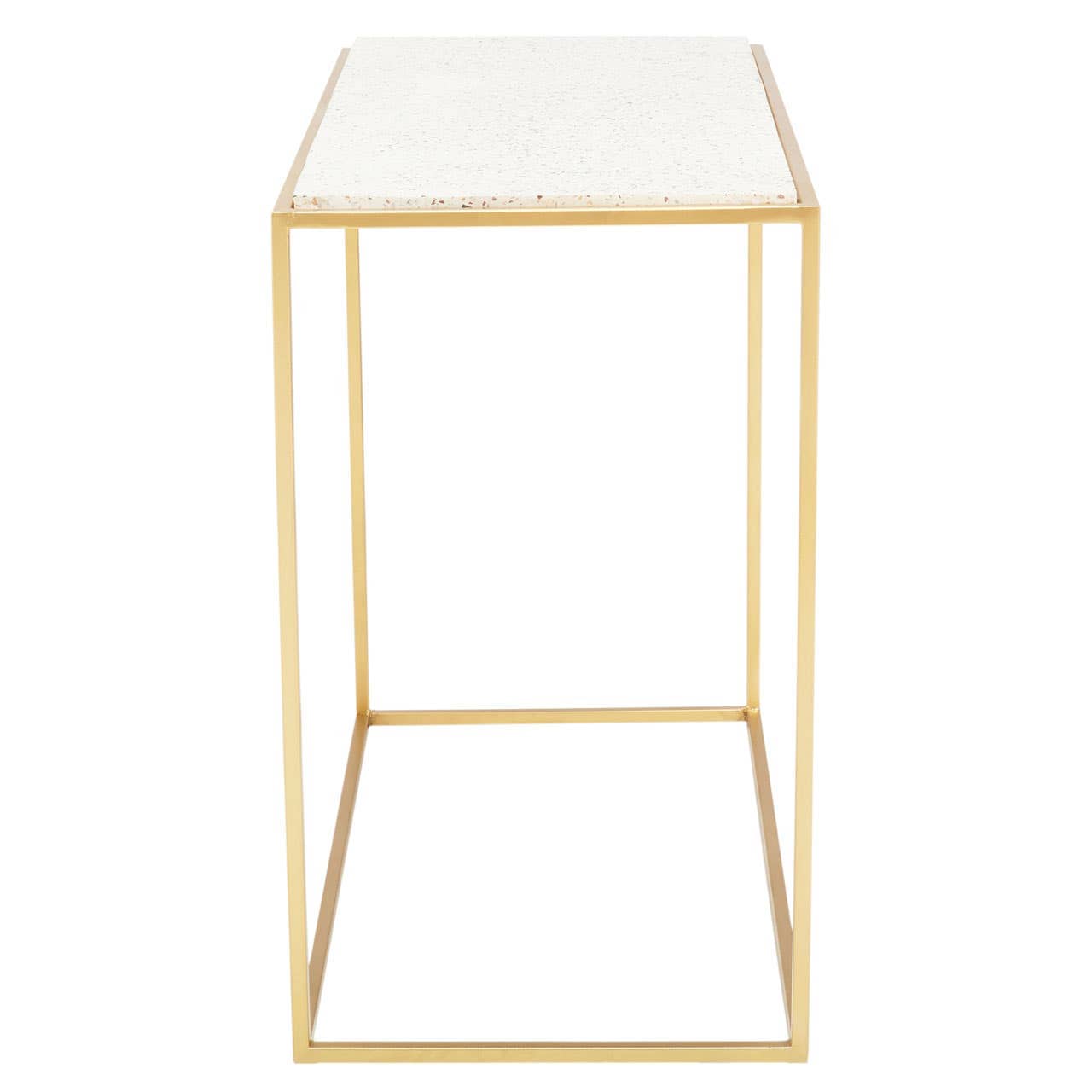 Featuring a sleek iron frame in the warm metallic finish, this console table will be a contemporary addition to a wide range of decors. Topped with white rectangular marble, this console table creates a focal point beneath a statement mirror or wall art.