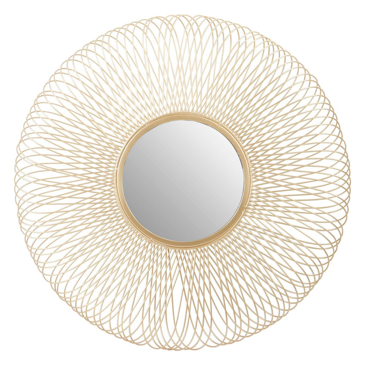 Made from iron in a gold finish, this wall mirror has a circular frame with sleek intertwining wires creating a spiralled design. The centre mirror has a luxurious trim that contrasts the luxe metallic tone making it ideal for contemporary interiors.