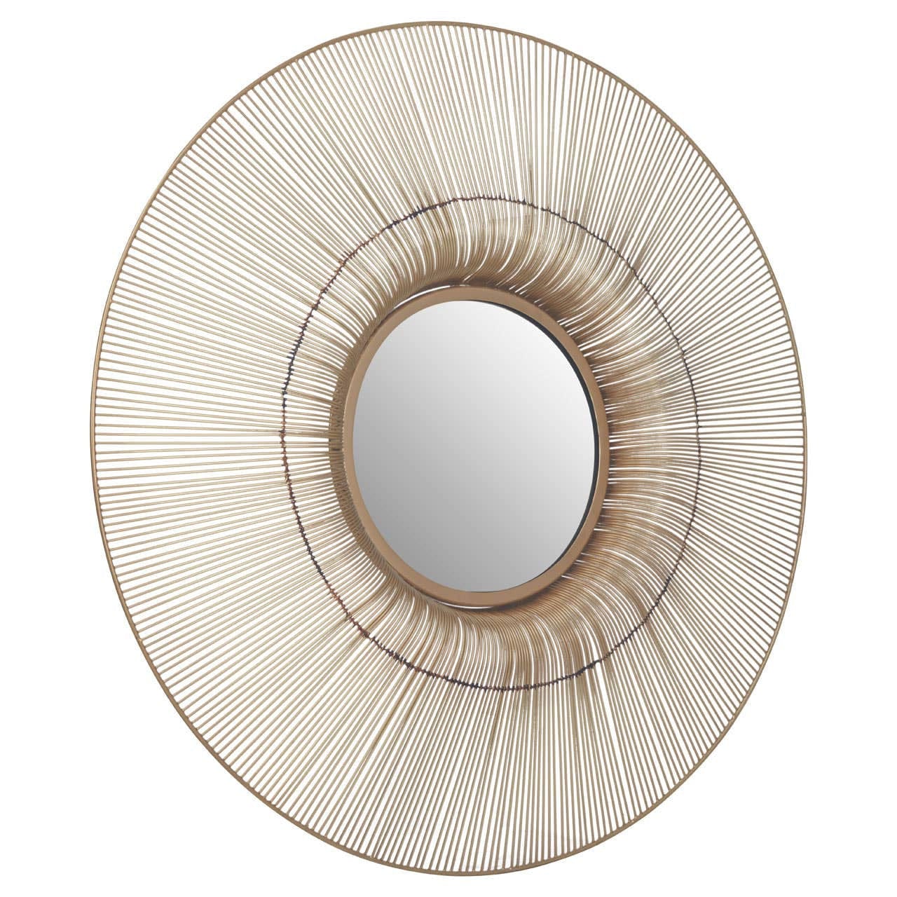 This wall mirror has a sleek design with an array of slender iron wires emanating from the centre in a luxurious gold finish. The mirror has a gold finish trim that harmonises with the symmetrical frame while adding a touch of opulence to any room.