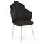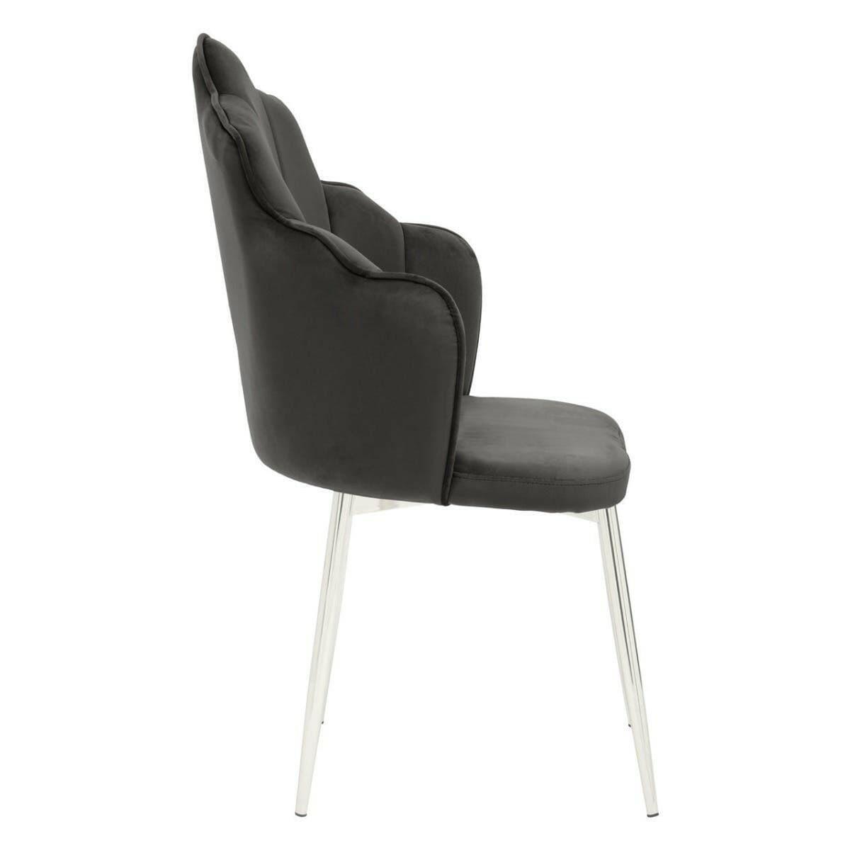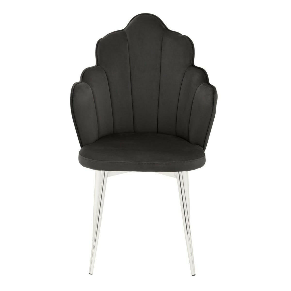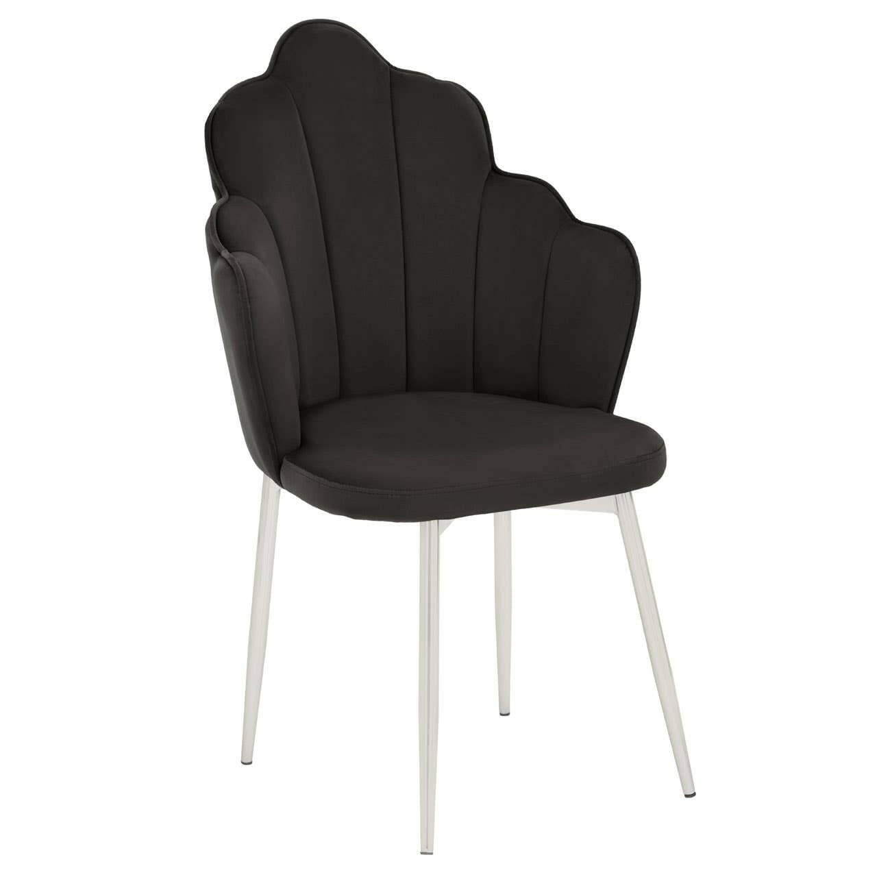 This dining chair is upholstered skilfully with black velvet that works wonderfully in a variety of decors. Featuring a sensuous scalloped edge, the foam-padded seat is perched atop chrome finish tapered legs which adds a chic accent to the living area.