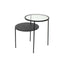 A mix of clean and rounded lines creates a streamlined look of this end table. A clear tempered glass top is fixed atop the round iron framing with three sleek legs extending to form the minimalist profile of this modern coffee table.