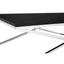 The stainless steel legs on the black coffee table are crisscrossed, which not only makes for an interesting design, but ensures the table is sturdy and durable. Part of the Tribute range, the MDF table top is upholstered in plastic that not only gives it that "black leather jacket" look, but makes the table easy to wipe clean.