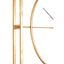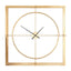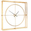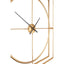 The clock's outer frame has a double layer design, with vertical and horizontal rods that intersect through the circle. It's made from smooth metal and has a gold finish that complements warm metallic accessories. Black minute and second hands complement the gold colour and have a minimal look that styles with the clock's slim lines.