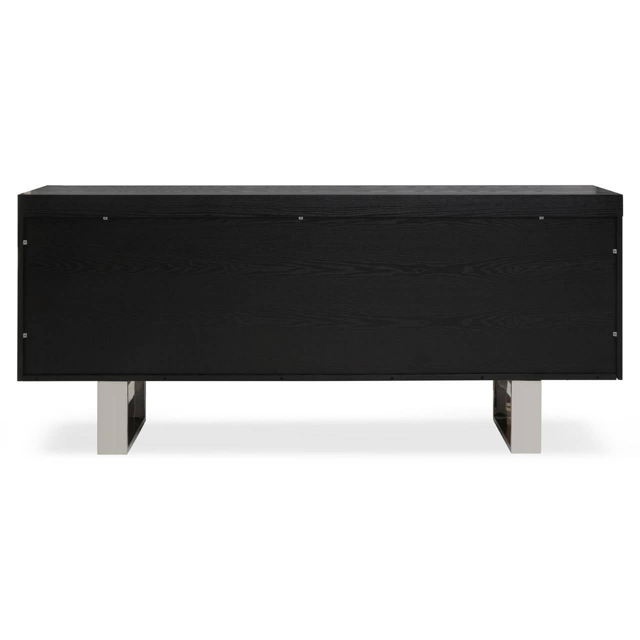 Skillfully handcrafted with elm wood in the black finish, this versatile sideboard in a rectangular shape provides ample storage solution. Complemented with three central drawers and two cupboards, this sideboard is supported by U-shaped metal legs.