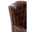 The Victor chair is covered with mocha coloured leather and has a quilted backrest that exudes heritage style. Studs trace the lines and curves of the armrest, and its feet are carved from solid walnut wood.