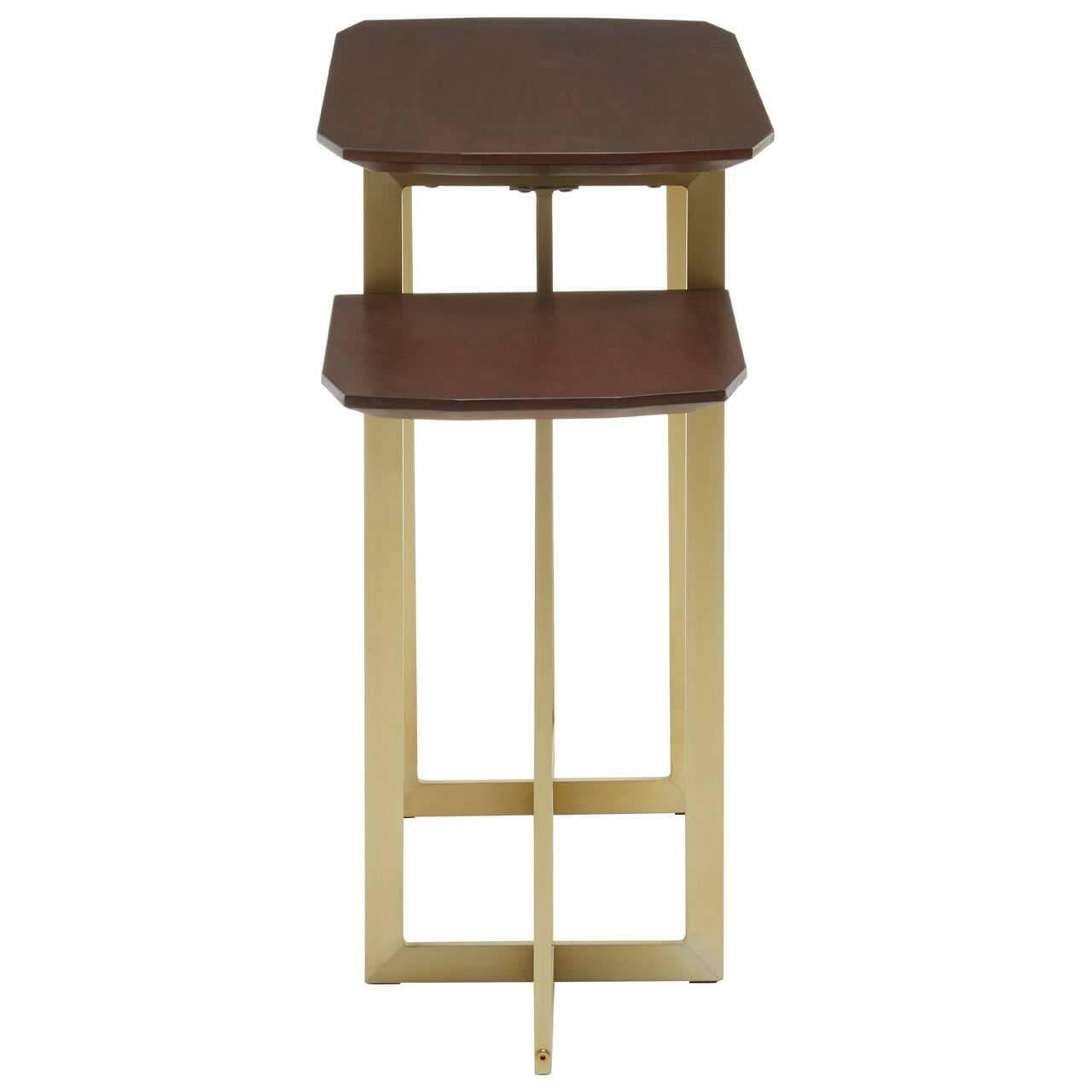 Each of its three tops is crafted from natural walnut wood, boasting the beautiful grain that this hardwood is renowned for. Featuring alternate heights, they are a great way to display small decorative objects. The tops are supported by gold finish legs that intersect at the base to achieve a seamless, flowing look.
