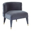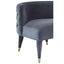 Its height and gently curving lines give the Villi chair a contemporary feel, while the quilted backrest add a hint of traditional design flair. The frame is made from solid mahogany wood and is covered with tactile velvet, from the backrest down t the feet. A gold finish metal band adorns each foot, adding a warm metallic touch to the look.