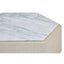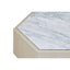Its oak body is formed into a hexagonal shape and is given a white stain to complement the metallic coloured base. The oak's prominent grain offers a textural balance to the richly veined marble top. The marble is white and grey and provides a tactile finish to this luxe style accent table. Display it beside a sofa or armchair in the living room.