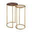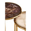 These round side tables have minimal design frames in a bright gold finish which will add a touch of warmth to interior space. A round, natural and white coloured amethyst top is neatly set into each table’s rim. Featuring a prominent veining pattern, their earthy tones are counterpointed by reflective golden hues of the bases.