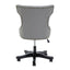 This chair features a grey leather effect padded seat with diamond pattern tufted back and studded detail trim at the front. Height adjustable with swivel action, the five-claw wooden base of this chair with castors ensures swift mobility and stability.