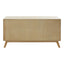 This scandinavian style chest has two-tone six-drawers and two doors. The drawers offer cut-out handles. Grey and white fronts complement the natural finish. Angular legs complete the mid-century look while drawers open to reveal ample storage.