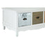 This clean, white coffee table is reminiscent of coastal beach houses. The drawers each differ in design and have different handles, giving a casual, mix and match look to the unit. The three drawers are deep enough to keep a multitude of household odds and ends. The drawer handles each have their own individual style.