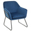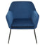 Upholstered in smooth midnight velvet, this armchair has an ergonomic seat and backrest in foam padding for a comfortable seating experience. The sculptural black finish sled base boasts a retro vibe and coordinates with the angular formation of the seat.