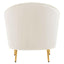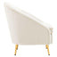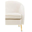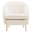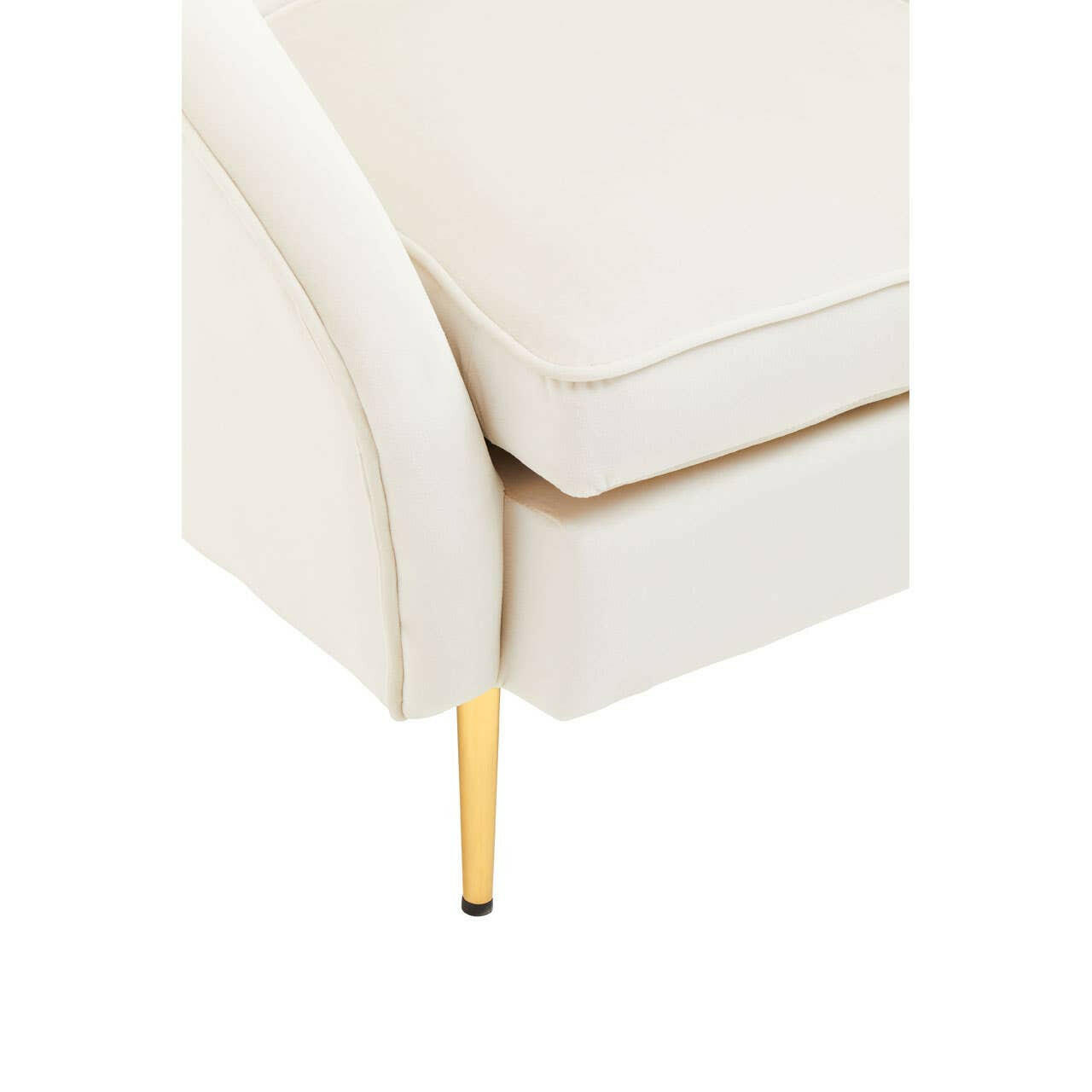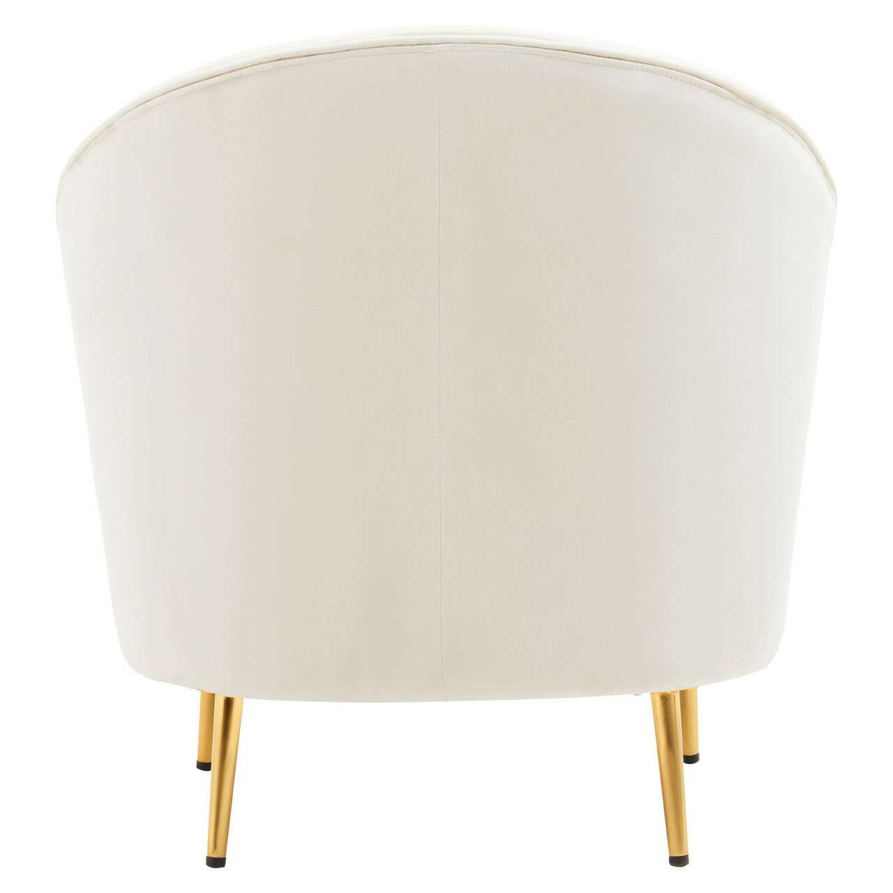 This beige velvet chair features a modern tub back with piped trim along the classic curves. High density foam cushions bring premium comfort complete with gold finish angular legs.