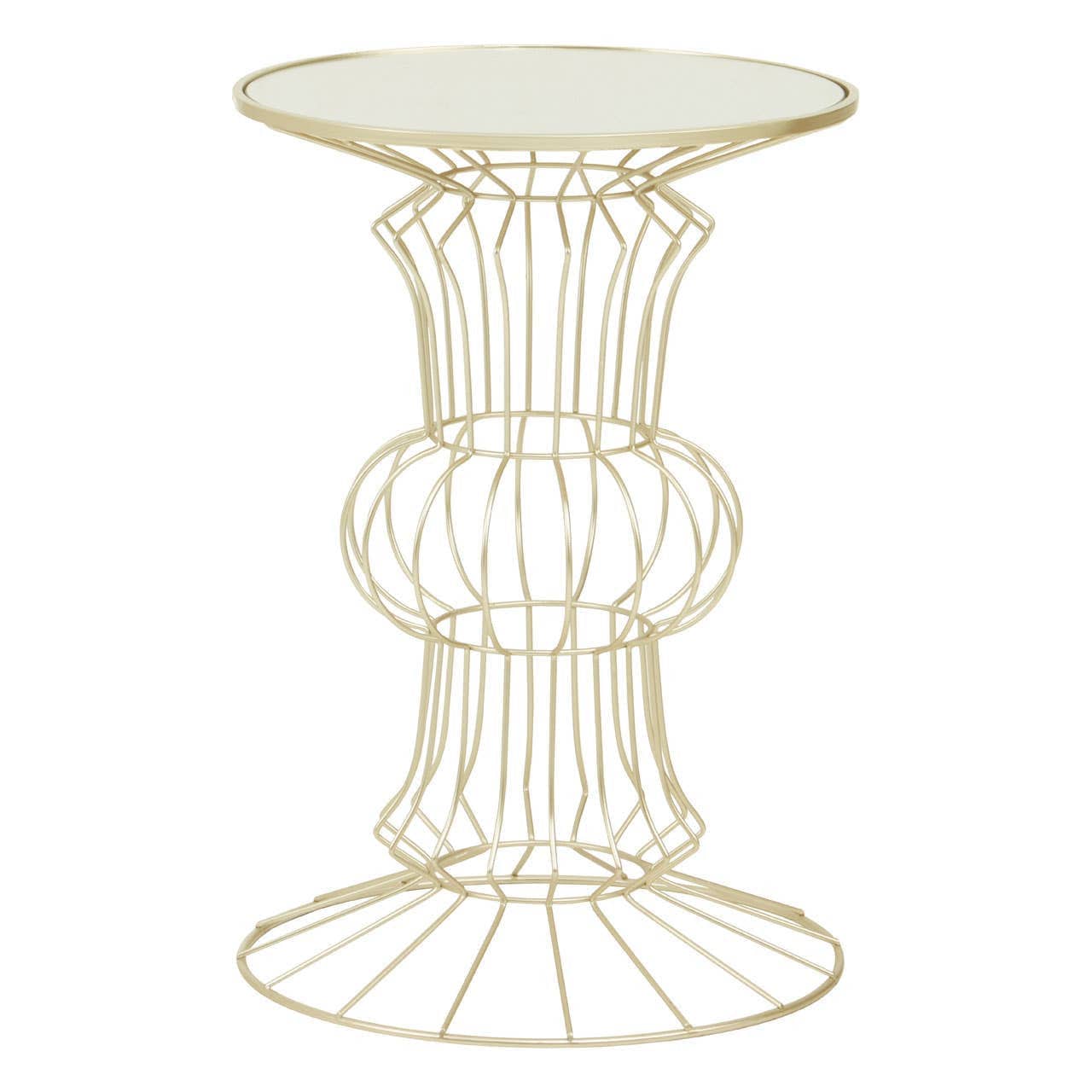 A pane round of mirrored glass is set into the top.This Yaxi side table adds luxe design style to the living room. Its architectural frame is crafted from metal , and has a concertina-esque stand with a round base and top.
