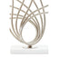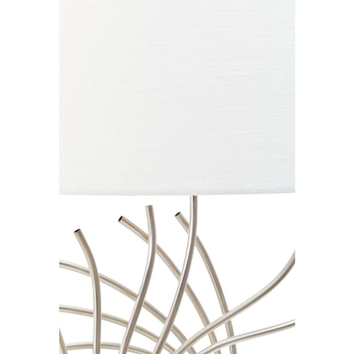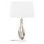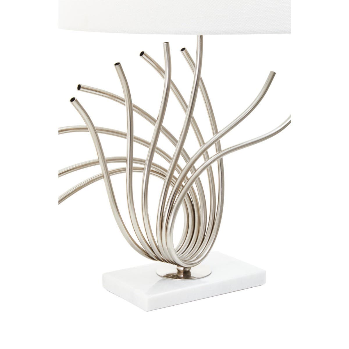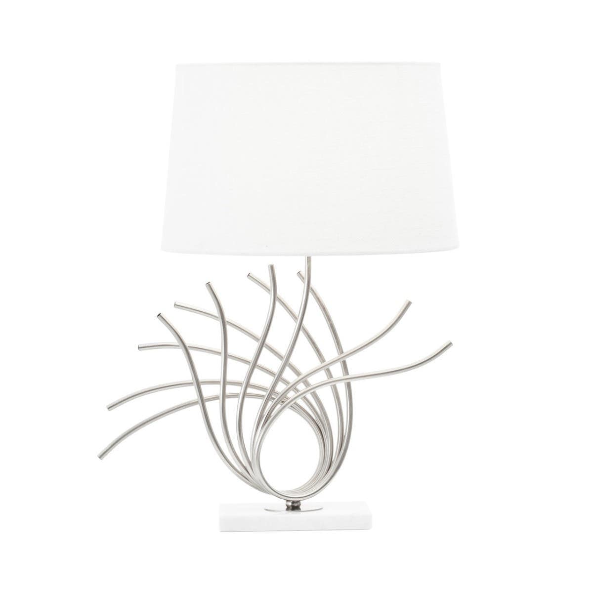 The Zaha table lamp is modern and chic. The base is crafted from brushed chrome and is formed into a flowing abstract sculpture, this is complemented by a minimalist white linen shade.
