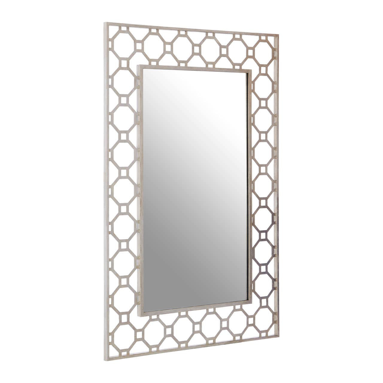 Its weathered metal frame has an antique silver finish, easy to coordinate with metallic accessories. The series of octagonal forms give it contemporary geometric appeal.