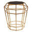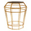 Its prismatic frame is made from textured metal and has a rich gold finish. An octagonal piece of glass forms the top, coloured black to counterpoint the gold.