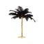 The Zendaya table lamp is a glamorous statement piece. The gold metal base is crafted to resemble an ostrich leg which is adorned with black genuine ostrich feathers. Small, individual lights create an ambient glow among the feathers.