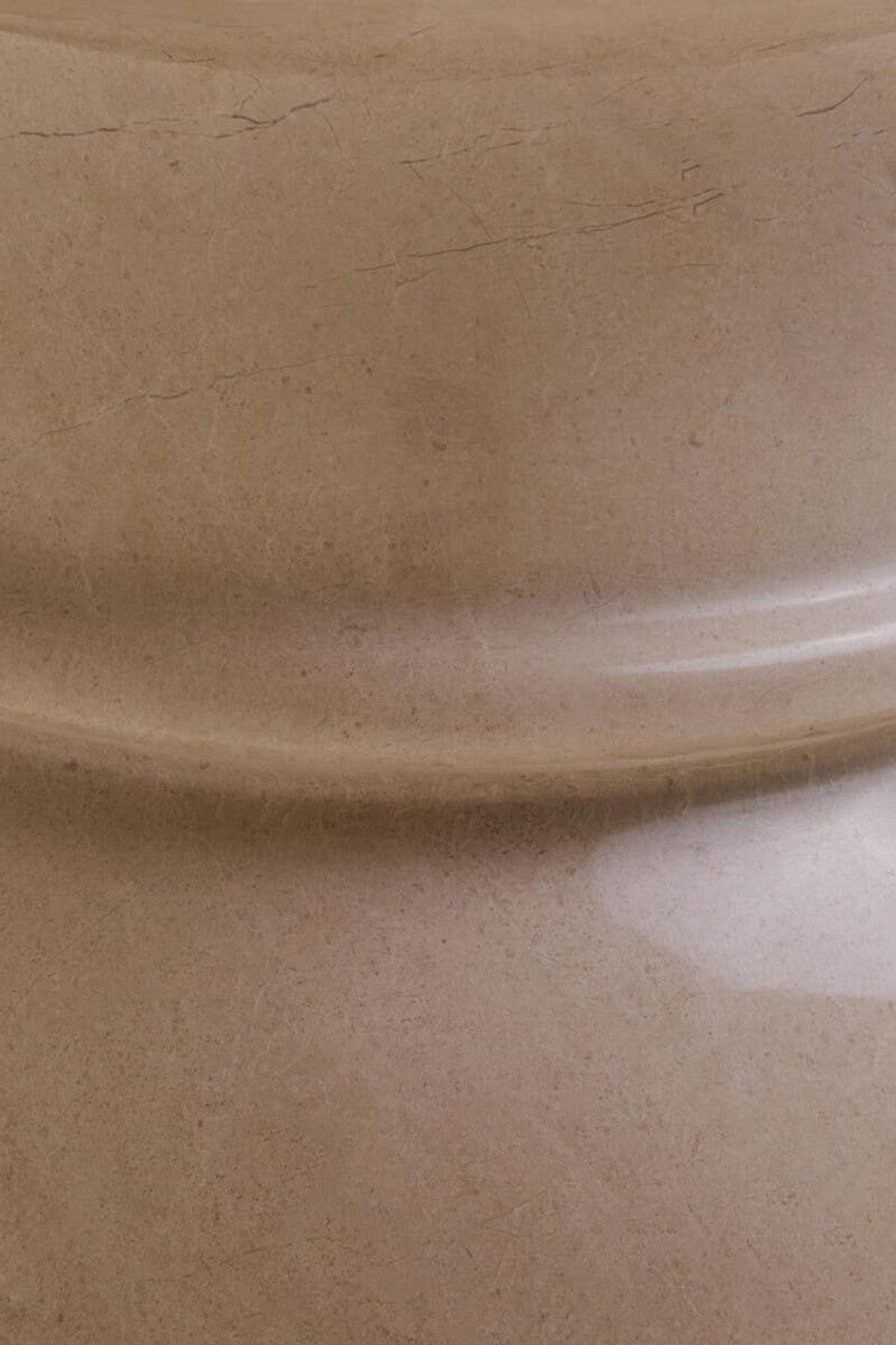 The cream marble stool combines function and style with its smooth rounded form and flat top. Handcrafted from natural marble, it offers a polished finish and stable base, making it ideal as a small seat, display stand, or interior accent piece. It can be used both as a stool and side table. *This product is handcrafted, colours may vary due to the nature of the product.*
