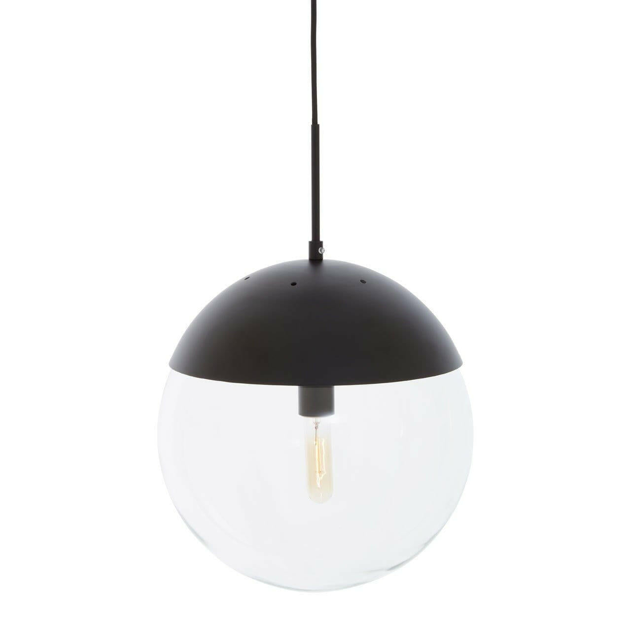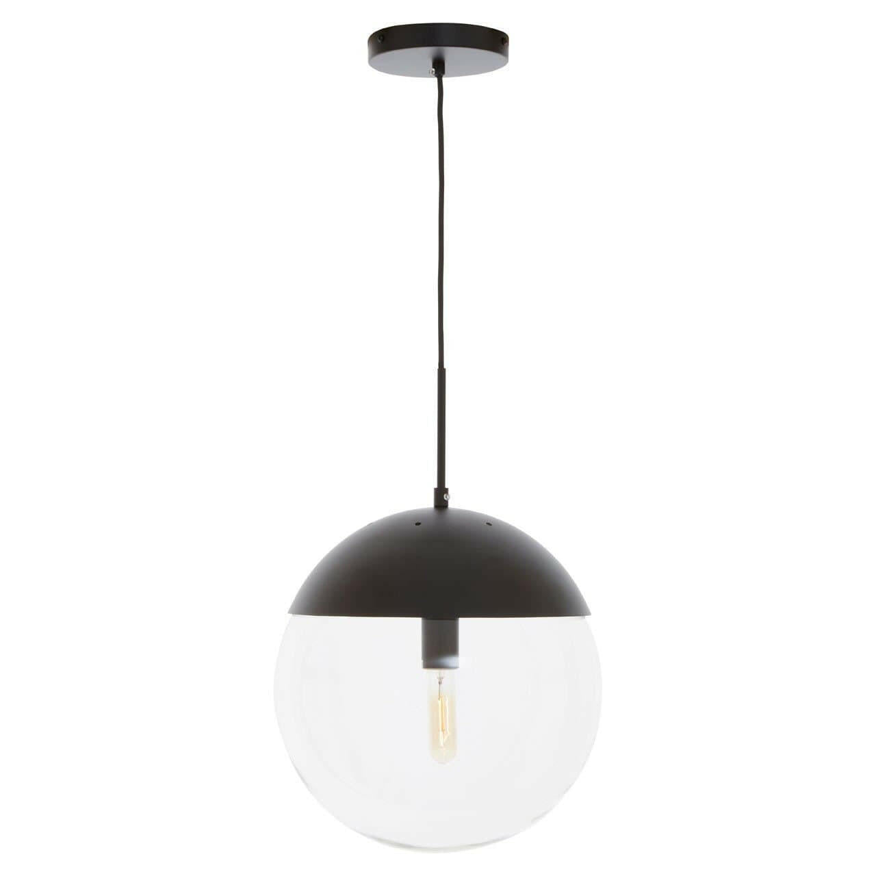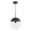 The Revive pendant light in the black finish exhibits an aesthetically pleasing charm in the living area. Horizontally suspended from an adjustable cord supported by a round metal canopy, the clear glass shade in a round shape will create a two-tonal contrast.