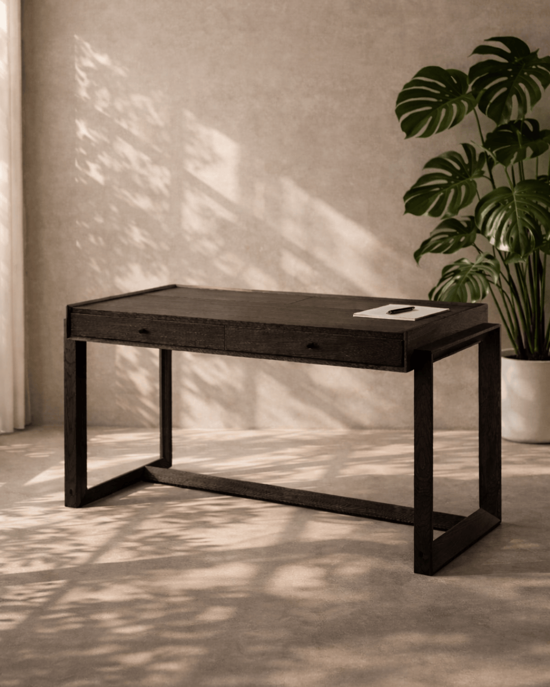 This version introduces a more grounded visual tone — ideal for interiors that favour contrast, texture, and restraint. Functional and expressive in equal measure, the Offset Desk balances utility with atmosphere.